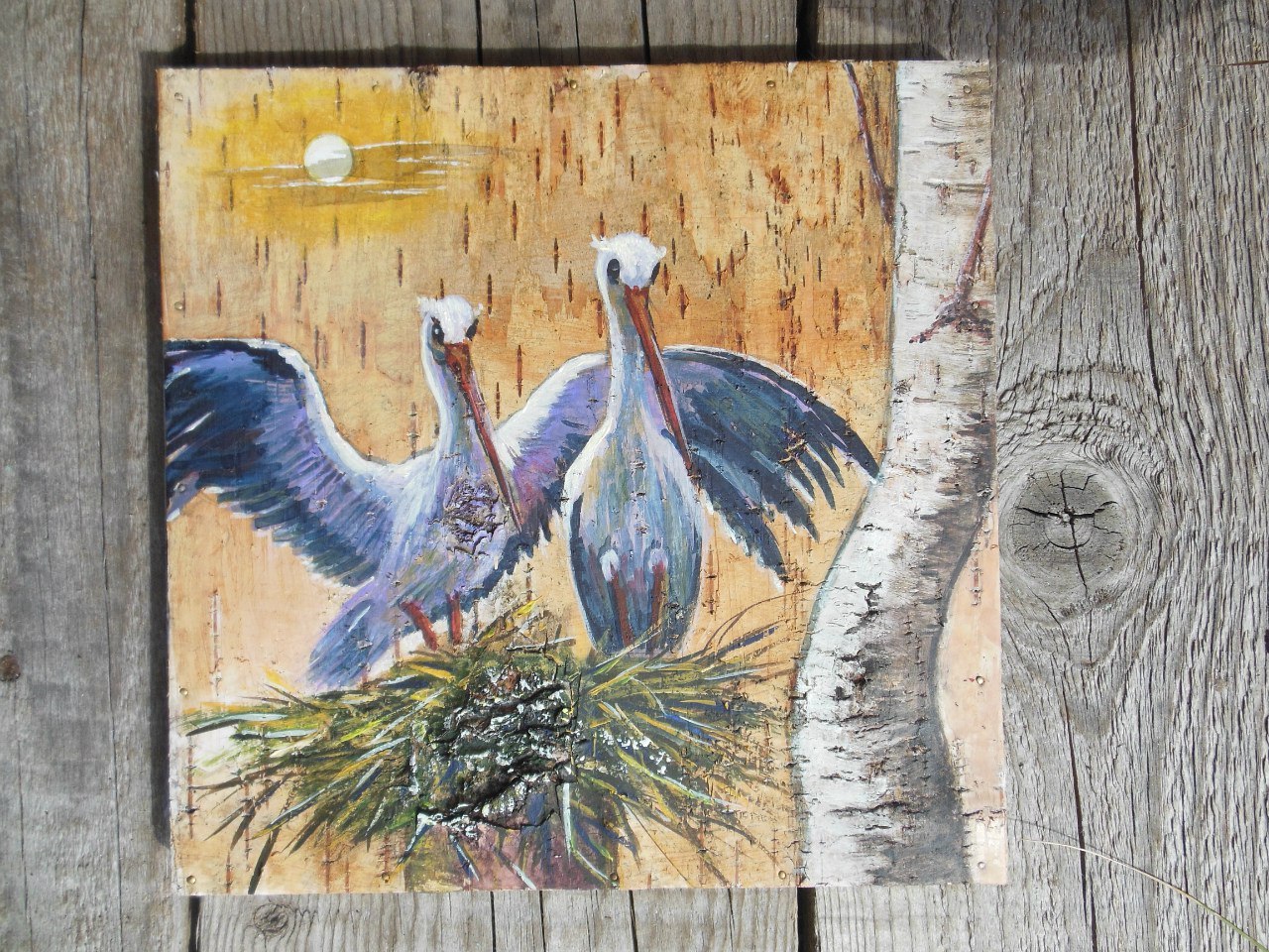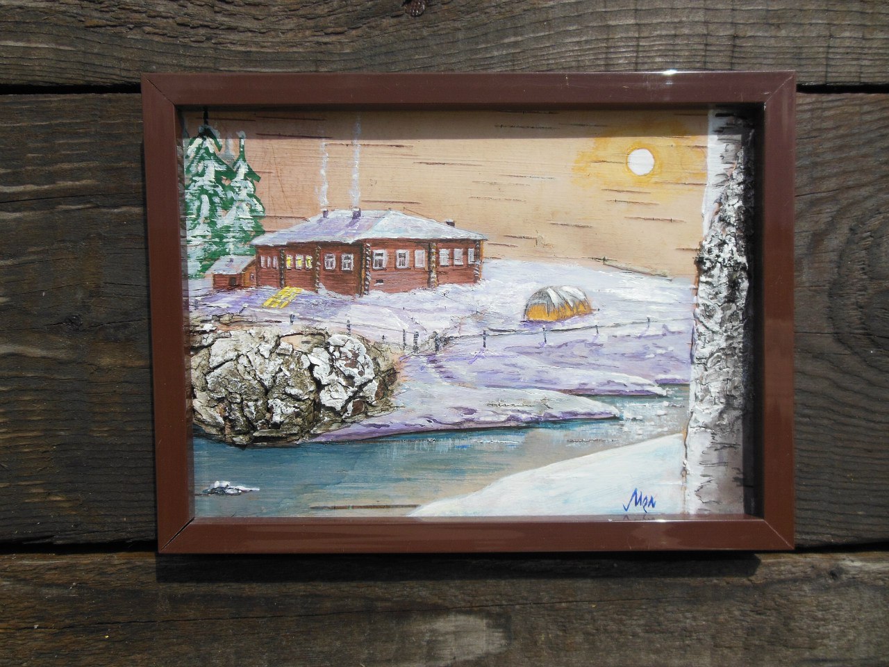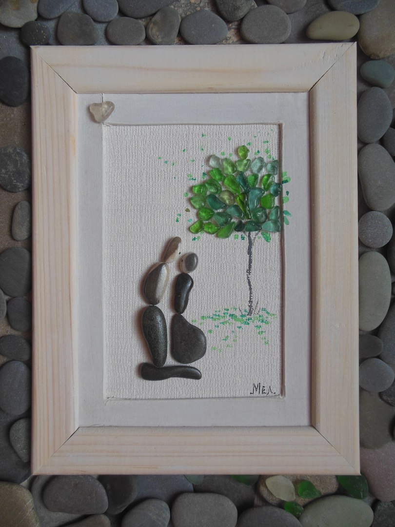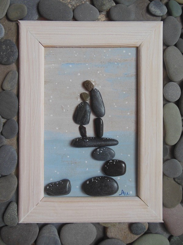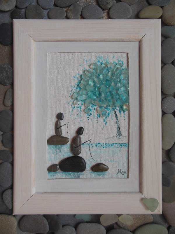 Картина "Нежность". Морская галька, худож.краска, картон, дерево. Размер: 19-13см.