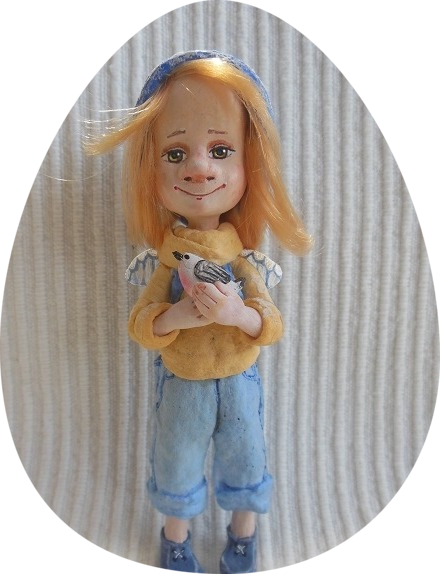 Авторская куколка "Ангел" Высота 15см. Техника смешанная: лепка, папье-маше, роспись.