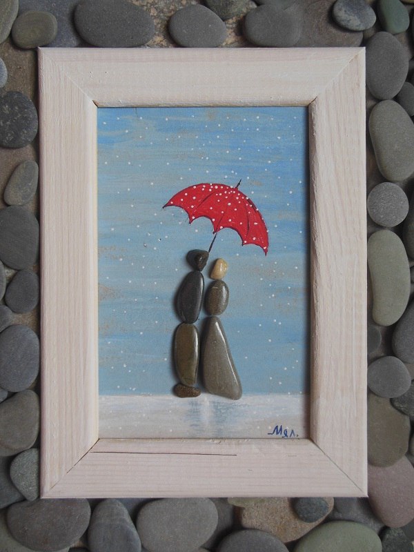 Картина "Под зонтом". Размер 19-13см, морская галька, худож.краска, картон