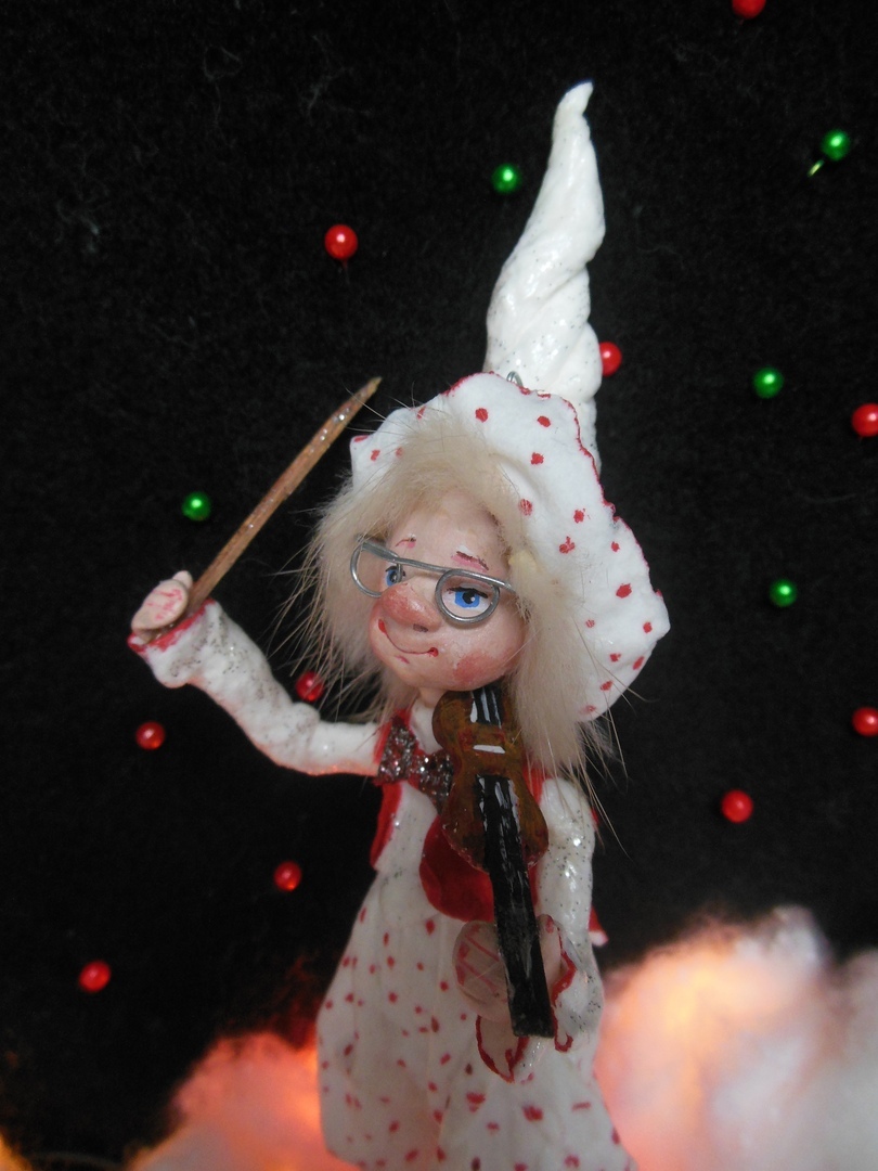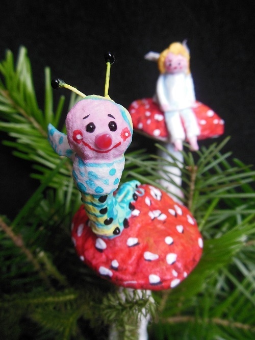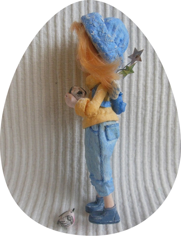 Смешанная техника: лепка, проволочный каркас, папье-маше, ручная роспись. Высота 14см.