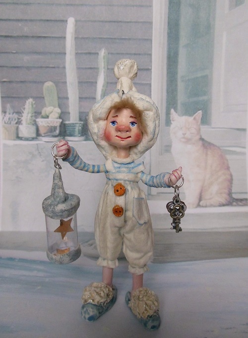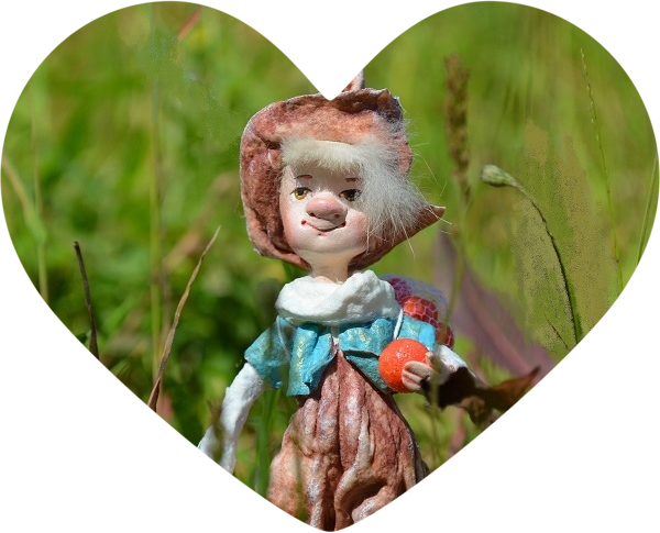 "Как-то ранней весной за рекой голубой Он увидел её и утратил покой... Крылья бабочки той были так хороши! Он пошёл вслед за ней, подарил ей цветы..." Авторская куколка "Влюбленный гномик" Выполнен в смешанной технике: голова, руки, ноги из полимерной глины, тело - из папье-маше, высота-12 см.