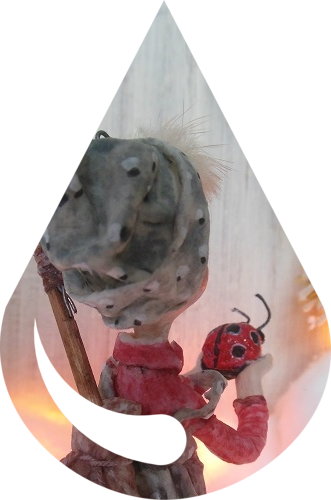 "Гномик".Маленький гном в земляничном лесу Пьет по утрам дождевую росу, Ну а потом, на букашке верхом, Скачет и машет цветным колпаком